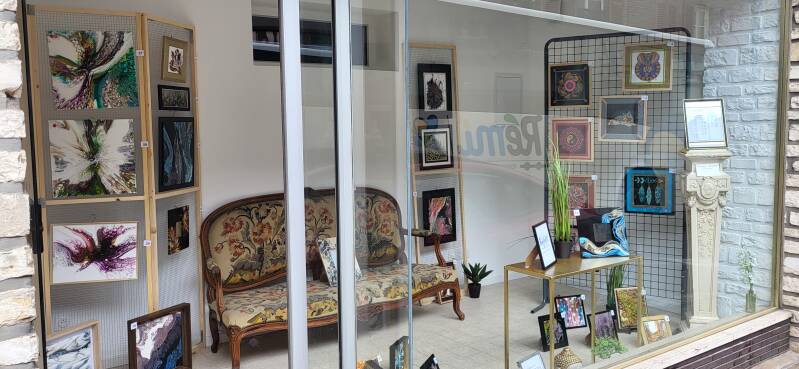 Une nouvelle artiste occupe la vitrine éphémère au 45 grande rue FANCH'ART vous pouvez y découvrir le pouring depuis le 3 mai 2025